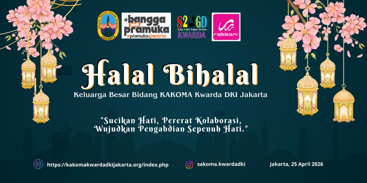Jakarta, 25 April 2026 — Keluarga Besar Bidang KAKOMA Kwartir Daerah DKI Jakarta menggelar kegiatan Halal Bihalal yang berlangsung dengan penuh khidmat dan kehangatan. Mengusung tema “Sucikan Hati, Pererat Kolaborasi, Wujudkan Pengabdian Sepenuh Hati”, acara ini menjadi momentum penting untuk mempererat silaturahmi sekaligus memperkuat sinergi antar unsur kepramukaan di lingkungan Kwarda DKI Jakarta.